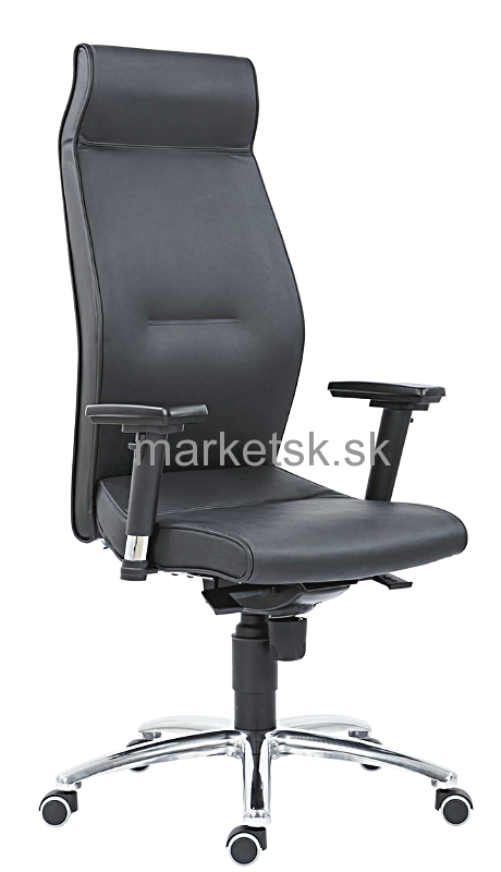 Nastavenie výšky sedadla 43-53 cm, nosnosť 160 kg.Kancelárske kreslo s anatomicky vytvarovaným vysokým operadlom a sedadlom, čalúnenie z injektovanej pamäťovej peny - pena sa nanáša a tvaruje priamo na kostru stoličky, pena aj pri dlhom sedení nestráca svoj tvar a objem, látkový poťah podľa výberu. Výškovo nastaviteľné podrúčky, synchrónna mechanika, nastavenie sily protiváhy, 50 mm pogumované kolieska so zníženým valivým odporom. Hliníkový leštený podstavec.