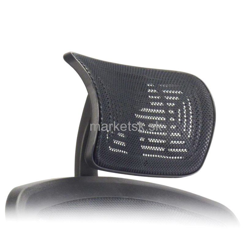 Sieťovaný podhlavník pre stoličku YORK, predná strana čalúnená čiernou sieťovanou látkou, uchytenie k operadlu stoličky pomocou tvarovaného plastového ramena. Výškové nastavenie.
