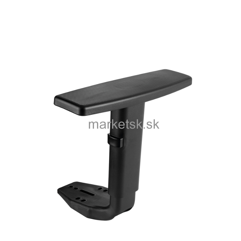 Podrúčky sú vhodné pre kancelárske aj pracovné stoličky. Výškové nastavenie bočným tlačidlom. Materiál: vrchné madlo, bočné plastové kryty z čierneho PP plastu. Podrúčky sa montujú do pripravených závitových otvorov na spodnú stranu stoličky. Dodávaný montážny materiál: skrutky, podložky.
