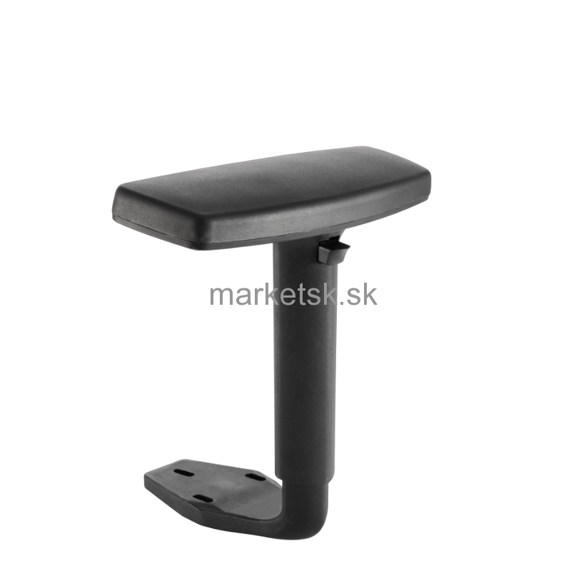 Podrúčky sú vhodné pre kancelárske aj pracovné stoličky. Výškové nastavenie bočným tlačidlom. Materiál: vrchné madlo z mäkkého polyuretánu, telo a bočné plastové kryty z čierneho PP plastu. Podrúčky sa montujú do pripravených závitových otvorov na spodnú stranu stoličky. Dodávaný montážny materiál: skrutky, podložky.
